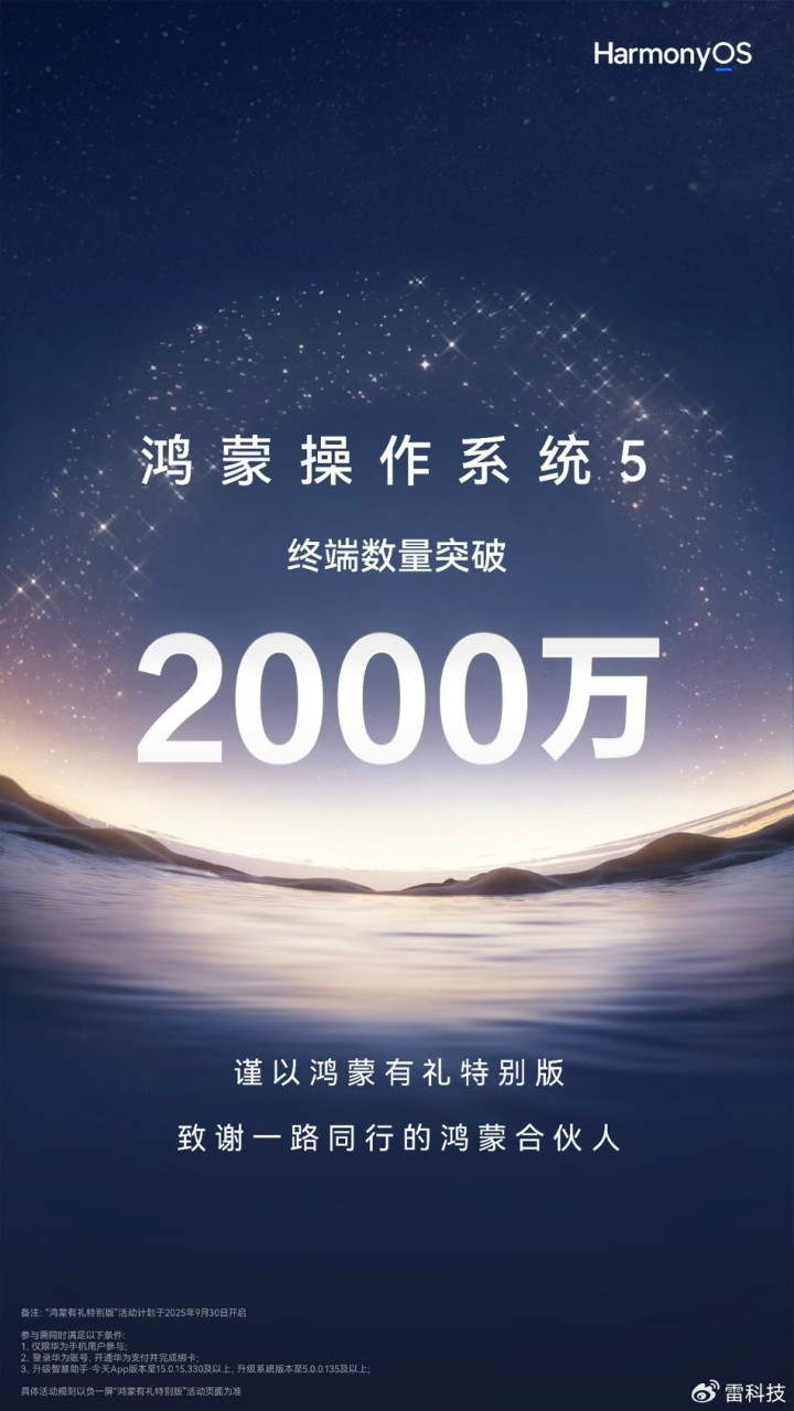 在从0到1,再到2000万的过程中,鸿蒙5用户和鸿蒙一起撑过了最初、最难的阶段,才有了今天。