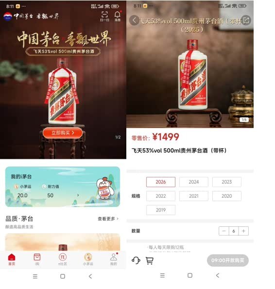 8点06分,张先生已经注册完会员,守在手机边盯着1499元的购买页面,选好年份和数量,按捺不住地等待开放购买的“猎杀时刻”。